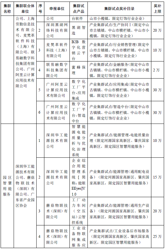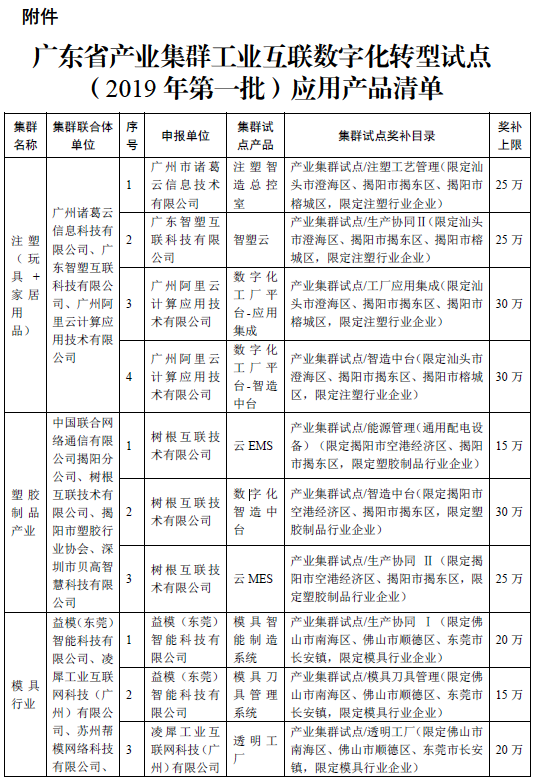 附件:广东省工业和信息化厅关于产业集群工业互联数字化转型试点(2019年第一批)应用产品评审结果的公示.pdf
