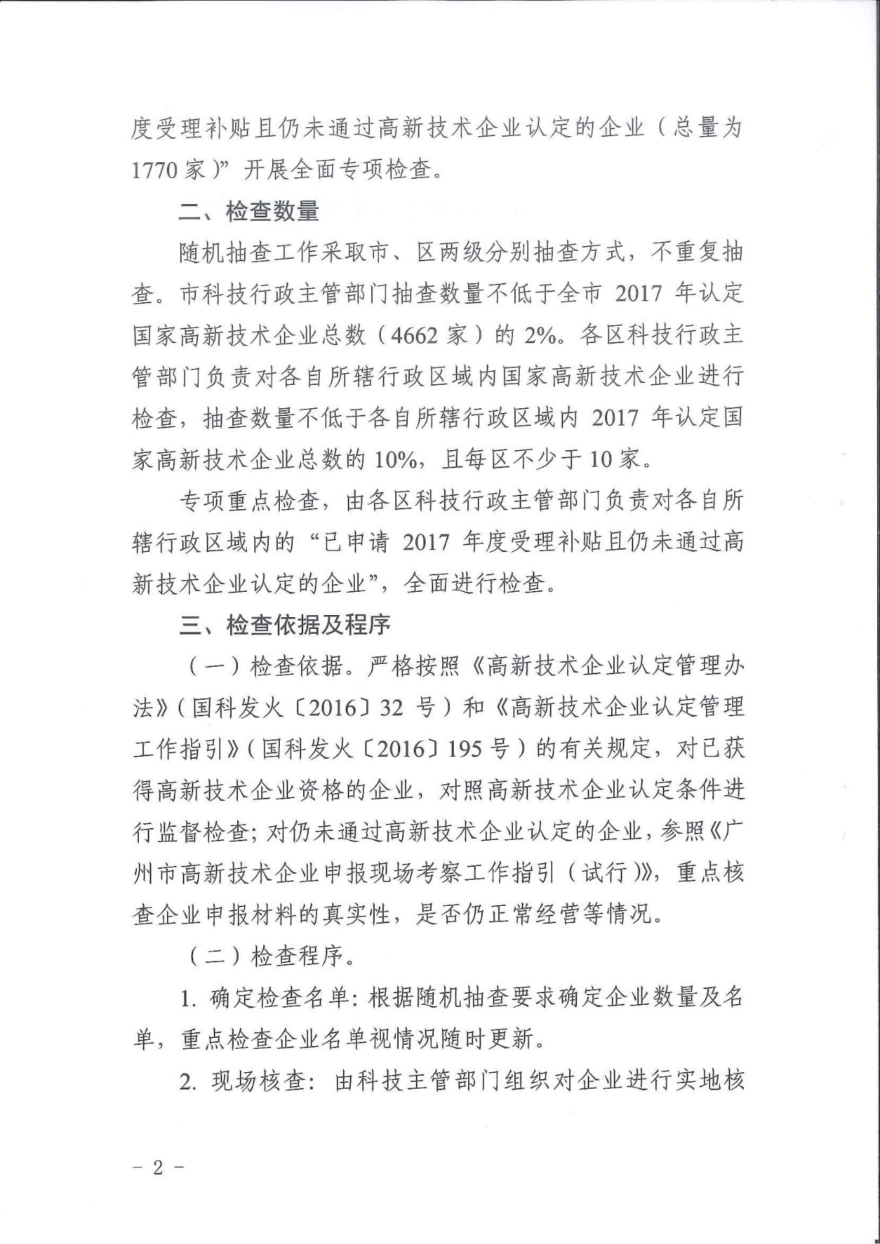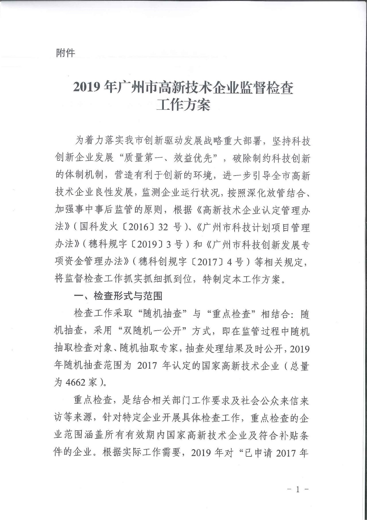 为坚持科技创新企业发展 “质量第一、效益优先”,进一步引导全市高新技术企业良性发展,监测企业运行状况,加强事中事后监管,现将《2019年广州市高新技术企业监督检查工作方案》印发给你们,请遵照执行。执行过程中遇到的问题,请径向我局反映。