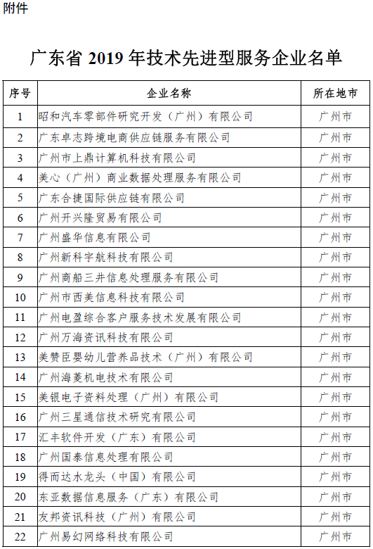 附件:广东省2019年技术先进型服务企业名单