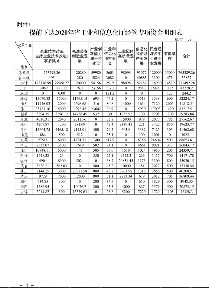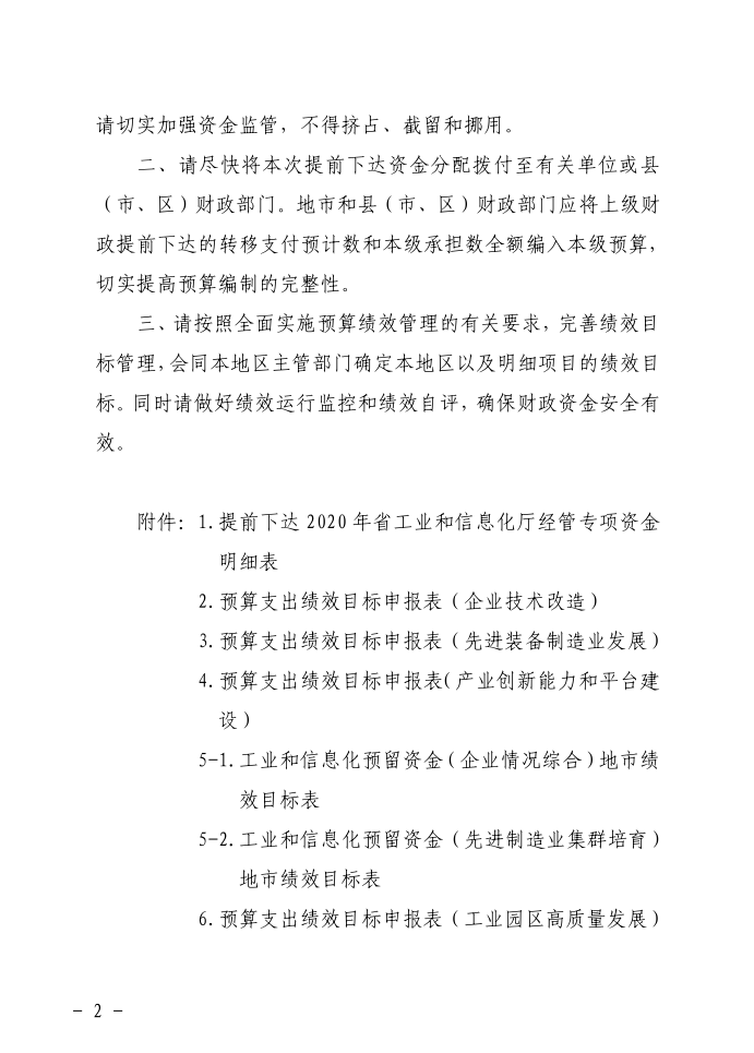2.广东省财政厅关于提前下达2020年省工业和信息化厅经管专项资金的通知