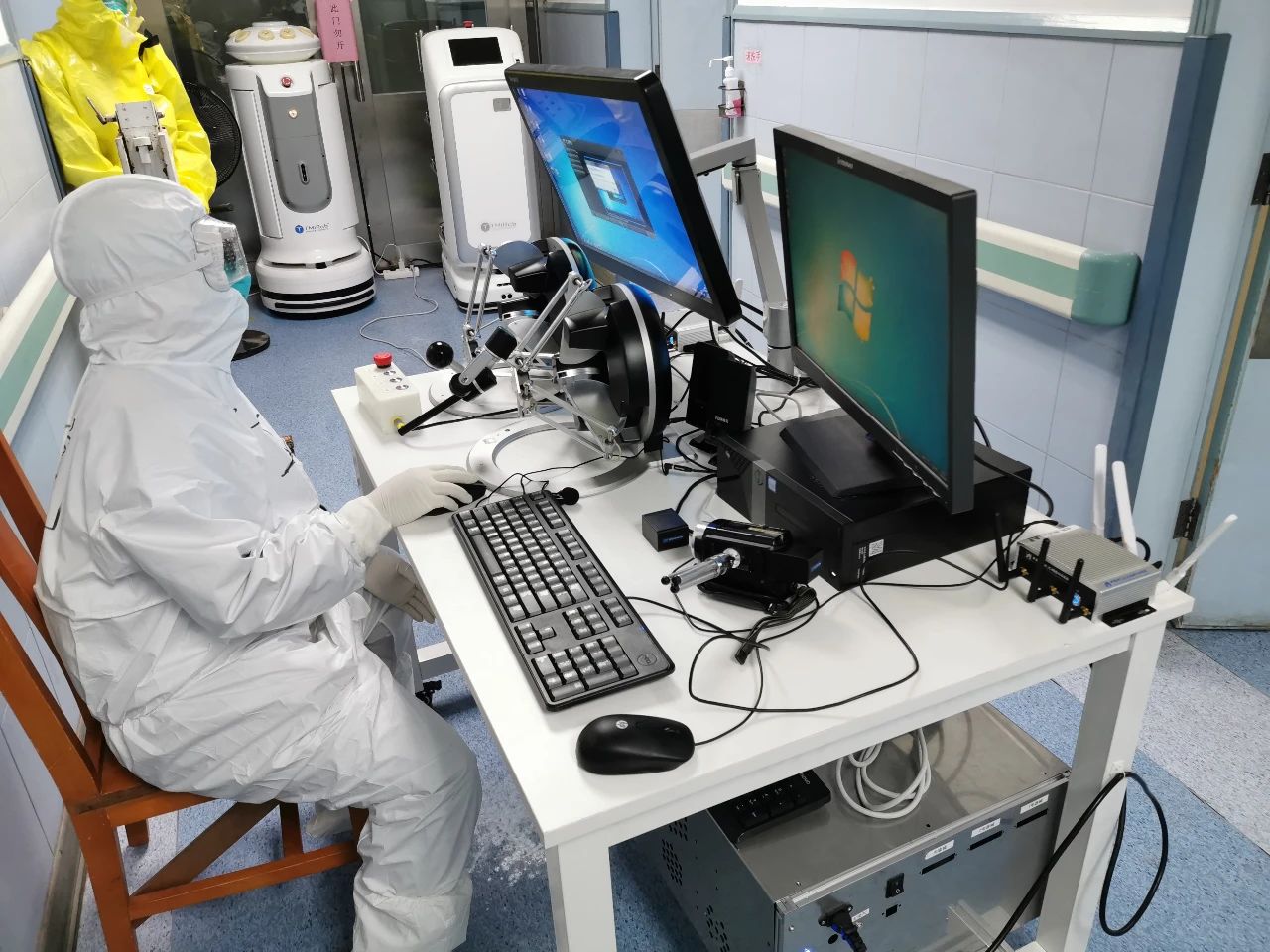 一是保护医务人员,避免潜在感染风险。在常规咽拭子操作过程中,医务人员须与新冠病毒患者近距离接触,具有较高的感染风险,通过该系统医务人员可以远程人机协作进行采样,有效避免了交叉感染。