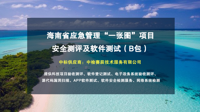 中检赛辰技术服务有限公司于6月下旬通过竞争性磋商的方式成功中标海南省省、市县XX“一张图”项目安全测评及软件测试。