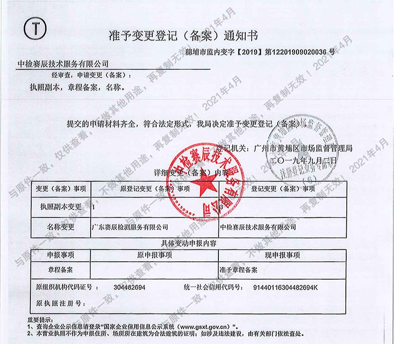 上图所示中的赛辰,即广东赛辰检测服务有限公司,于2019年9月2日经广州市黄埔区市场监督管理局准予变更为:中检赛辰技术服务有限公司(简称:赛辰),是一家致力成为中国权威的信息化建设质量保障机构。赛辰提供的软件测试服务在行业内以服务质量好、信誉度优、出具的第三方检测报告权威度高而获得全国客户认可,客户亲切的称呼我司为:“赛辰”,“广东赛辰”,“赛辰检测”。